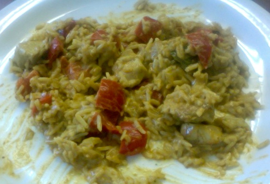 The verdict?  After picking out the red peppers (I’m sensitive to them if I eat them) I tasted it and it was really good!  I got the recipe from her and have made so many times I don’t even need the recipe anymore.  I have also given the recipe out to several people.  I found the true story of my Sister’s Maple Chicken Curry when she sent it to my cousin for part of a cookbook family and friends put together for a shower gift recently.  I’m sure she won’t mind me sharing.