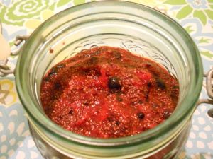 After I told my sister about Chia (a blog is coming all about it soon) she found a recipe for jam in one of her fitness mags she reads. I don’t think it was the actual “Fitness” mag that she got it from. After reading them for a while they are pretty much the same – they start to blend together. Anyway, we made the jam together. After making it and tasting it we both decided we would never have to make the traditional jam again!