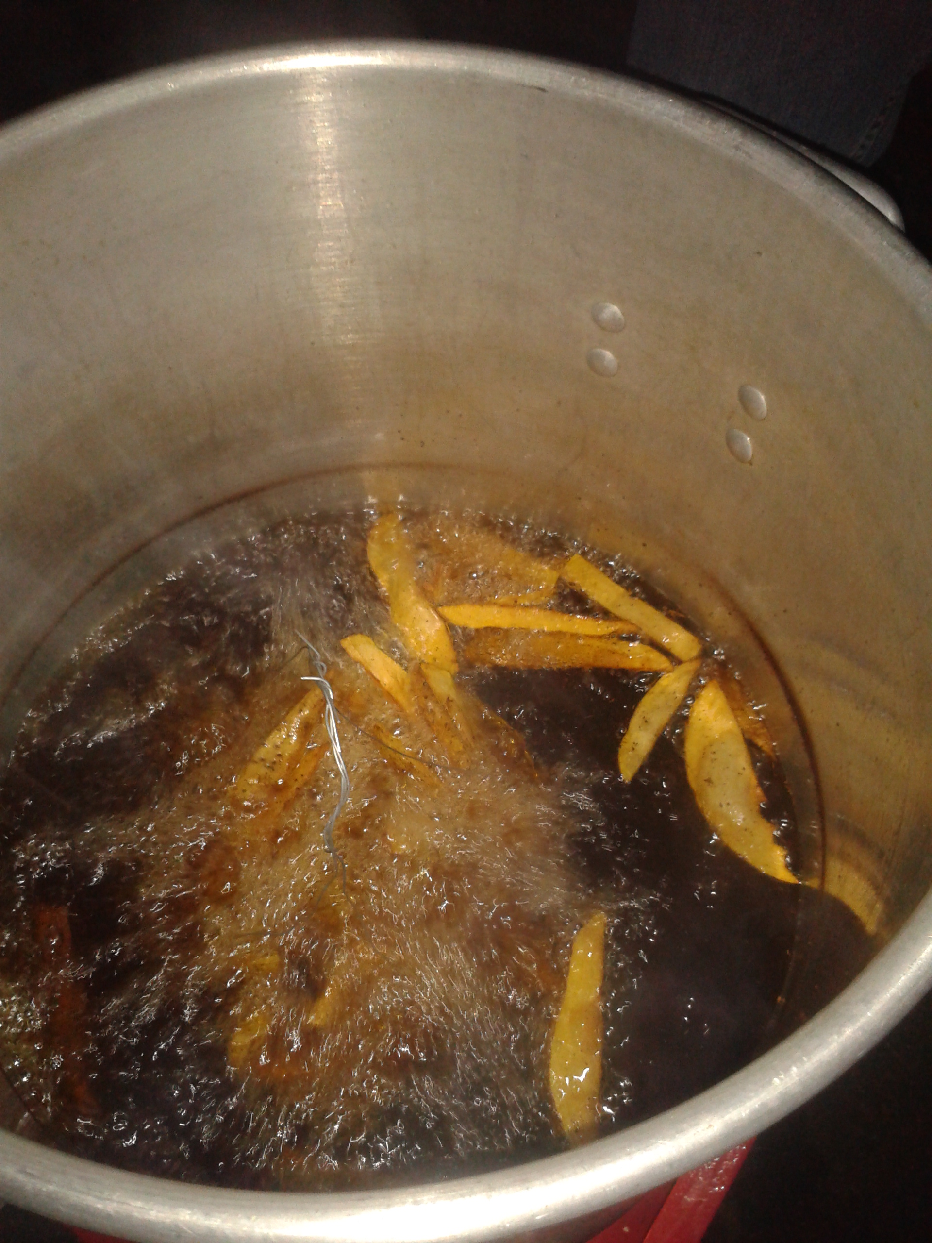 Frying it up! It took about 35 – 40 min. We were all gathered around but it was too cold outside to stay out and watch it cook.