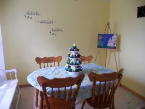 Tip about the grass #233 tip: I tried to use left over frosting that I put jello crystals in and it did not come through the tip very well. Perhaps there was some crystals that didn’t allow it to come through nicely. I had left over frosting in a can and that worked great. I know it’s not homemade but when you are in the middle of the end of the term it is much faster making cupcakes from a box and frosting them from pre-made stuff.