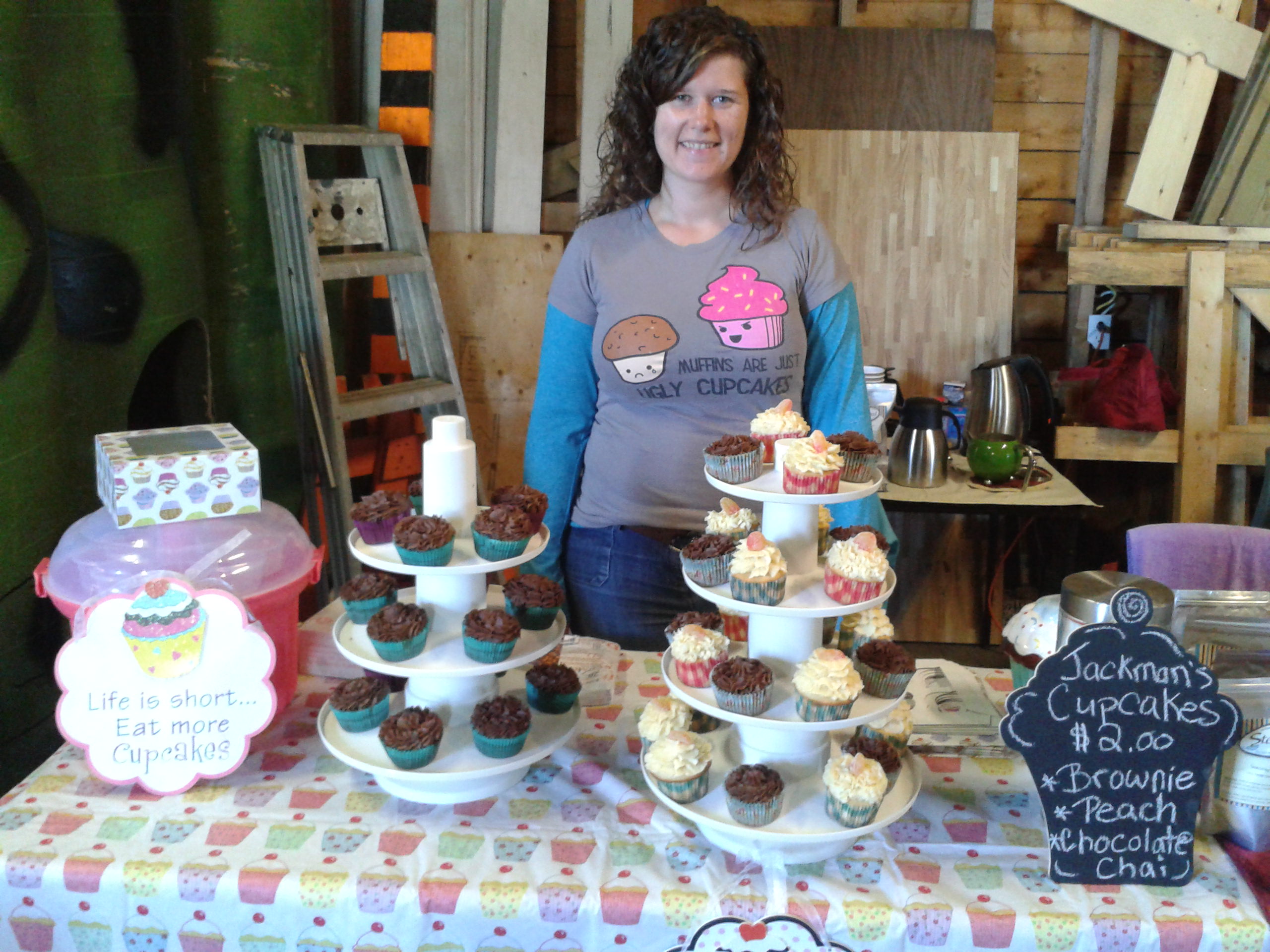 What a great morning of meeting wonderful people at the market, time spent with my sister, and enjoying people’s reactions to chocolate brownie cupcakes, peach cupcakes, and chocolate chai cupcakes! I would say time well spent! I took along 43 cupcakes and only brought home 10.