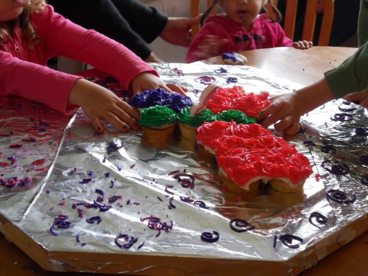 What better way to make a cake then putting cupcakes in whatever shape you desire. They are perfect for any event! No need for forks or plates. Just pull off a cupcake and enjoy!