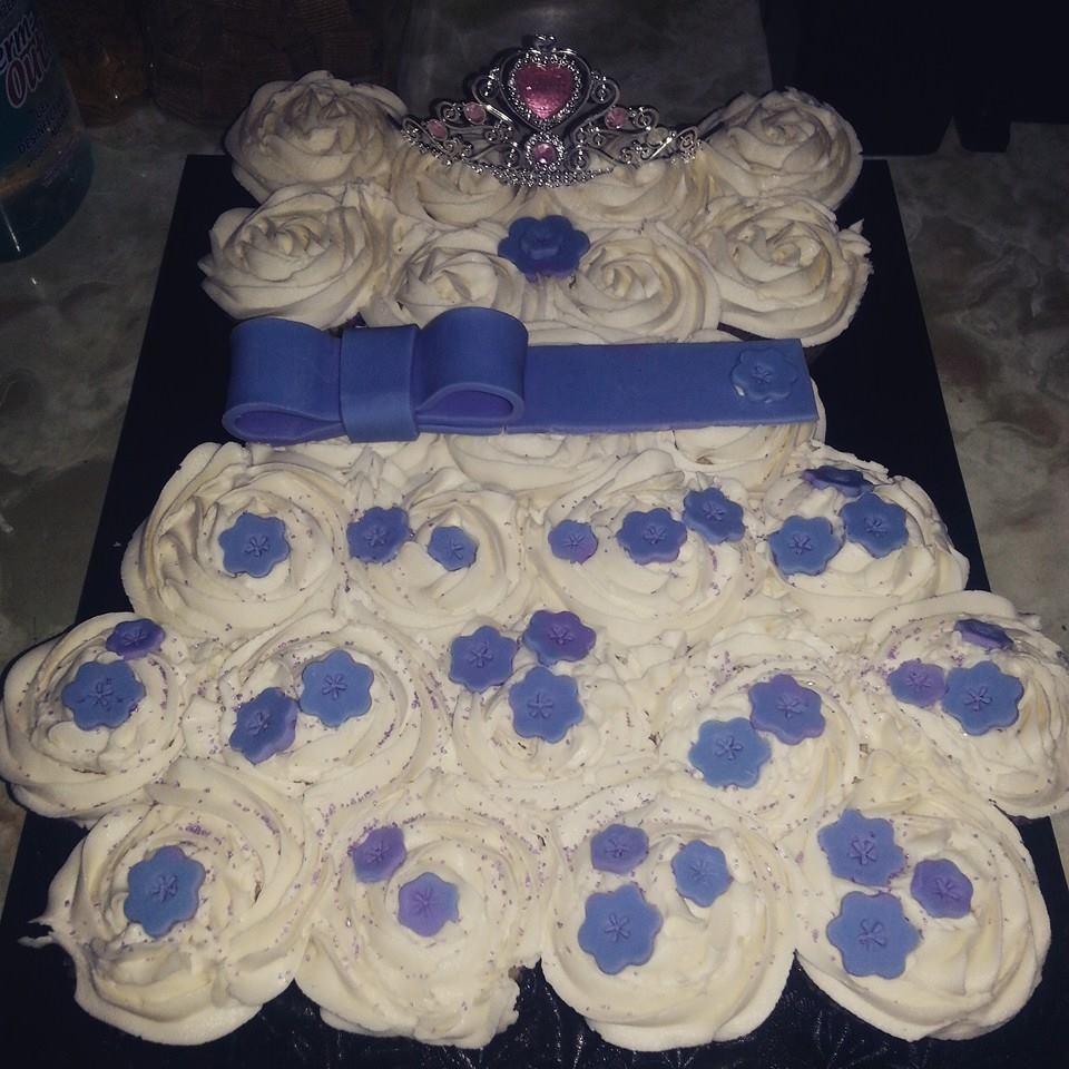 Princess Dress Pull a part cake for my nieces 6th birthday party. The kids helped put on the flowers made from Fondant